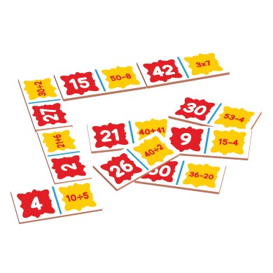 En el Dominó Pequeños Cálculos, el objetivo es relacionar las piezas de las operaciones con las piezas de sus resultados.