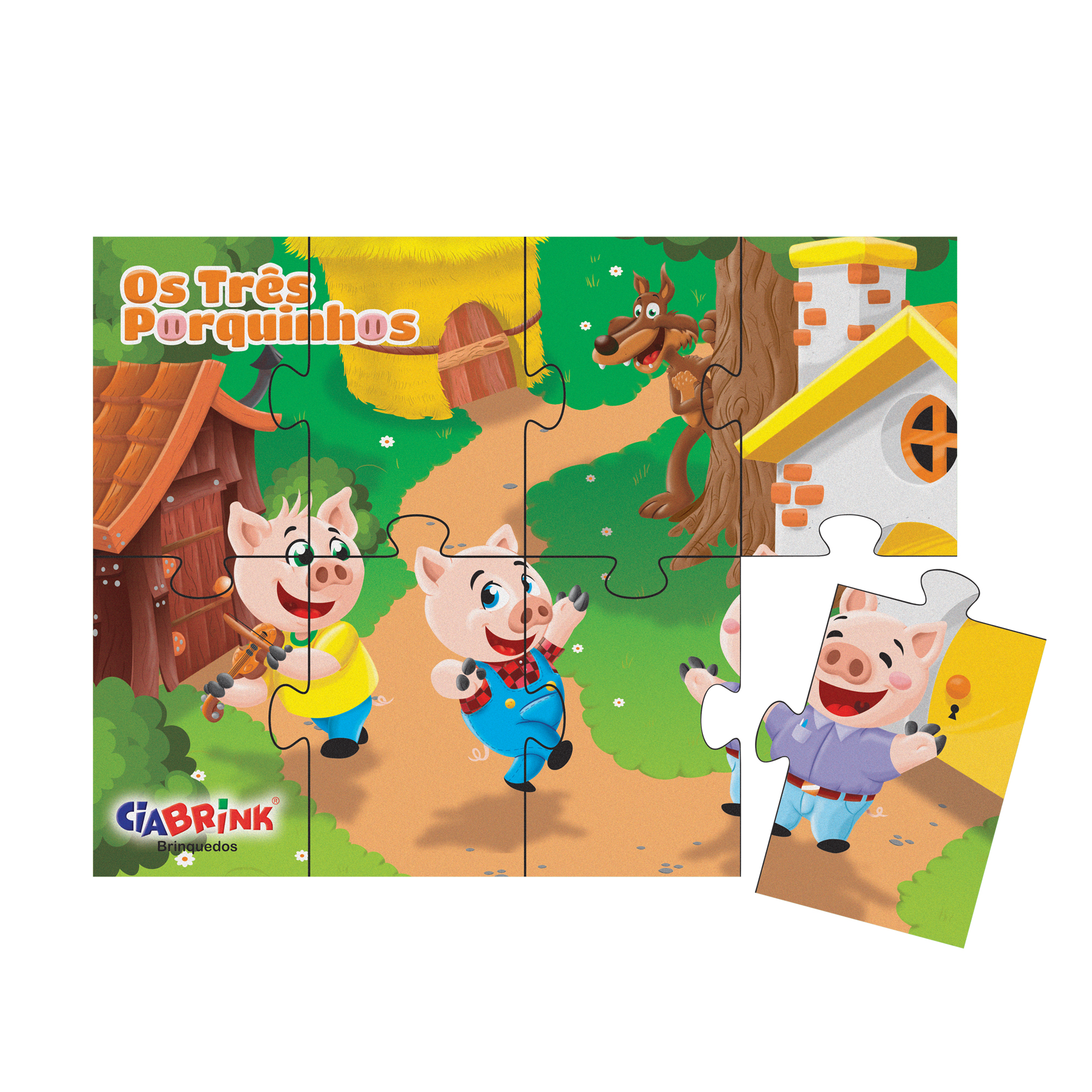 Los tres cerditos han construido sus casas y son felices jugando. ¿Sabes lo que sucede después? Arma a este lindo rompecabezas y diviértete contando la historia.