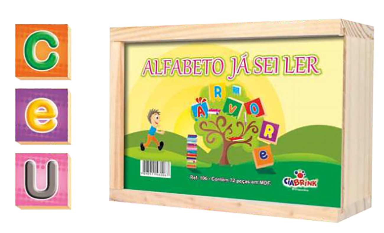 Com peças coloridas em madeira, estimula a atenção, a percepção das cores e o aprendizado das letras, tornando a leitura e a escrita uma experiência prazerosa.
