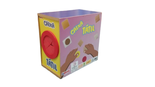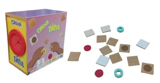 Esse brinquedo é desenvolvido para aprimorar a capacidade de reconhecimento e comparação de diferentes formas e texturas pelo tato. Na abertura, a criança coloca as mãos para identificar e encontrar o par de objetos correspondentes.