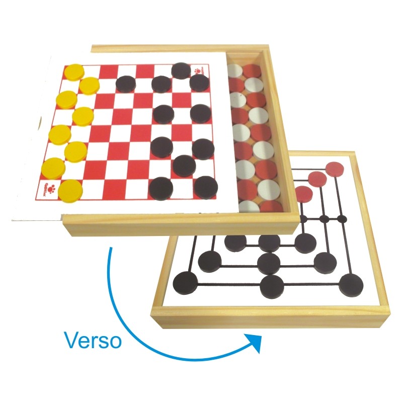 Dois jogos clássicos para garantir horas de diversão. Jogo de dama e trilha no mesmo produto.