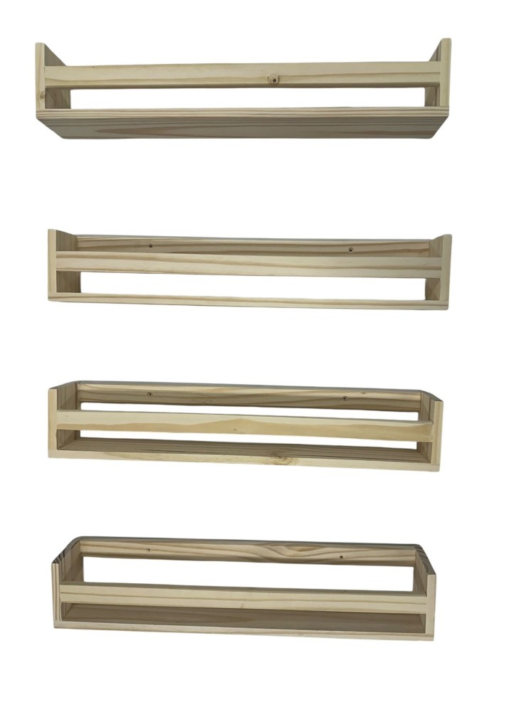 Este kit com 4 nichos em madeira de pinus é perfeito para organizar e decorar qualquer ambiente com um toque natural e minimalista. Ideal para expor pequenos objetos, brinquedos, livros ou plantinhas.