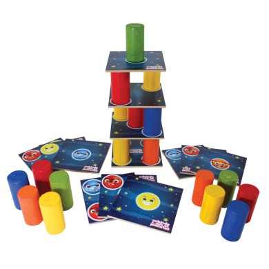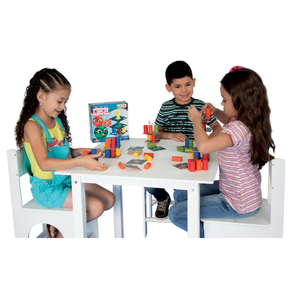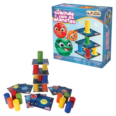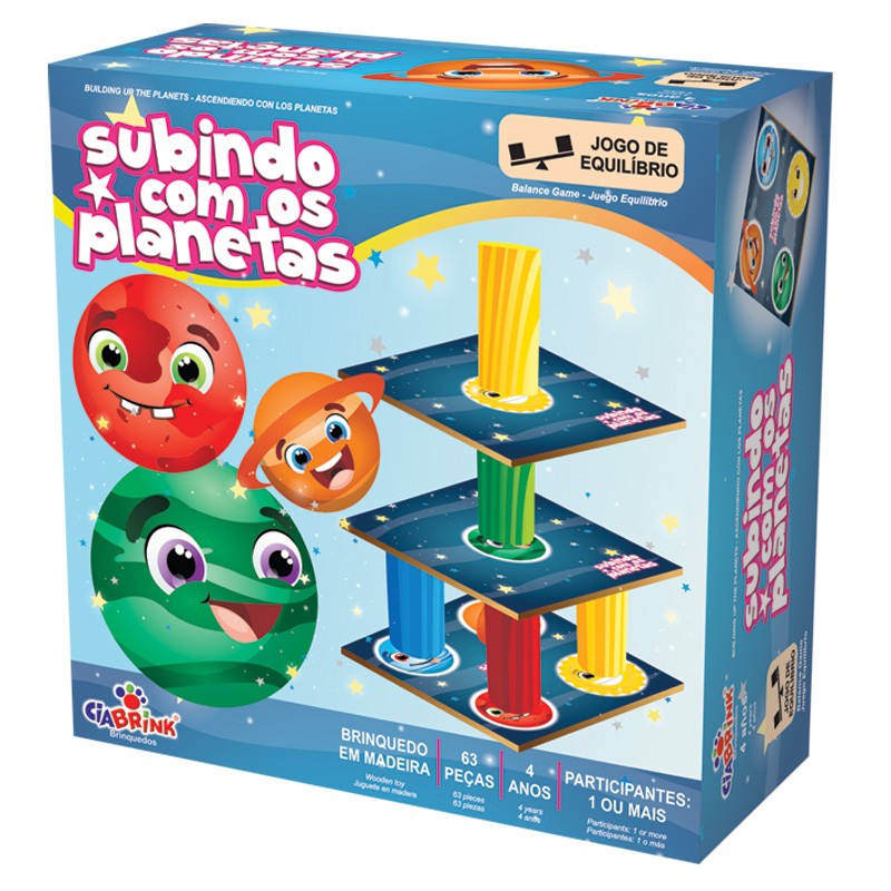 Subir a torre dos planetas sem deixar cair nenhuma peça, esse é o desafio. Acompanha embalagem em tecido para guardar as peças do produto.